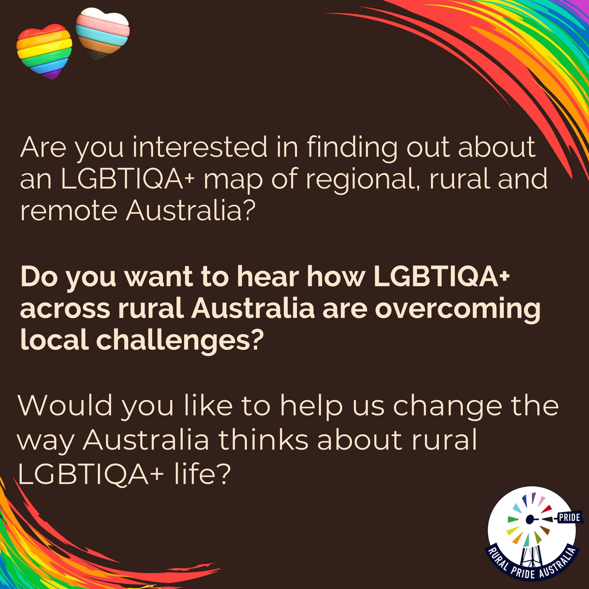 Rural Pride Australia shared a report back to community for feedback, and committed to publishing these pilot community results on our website.